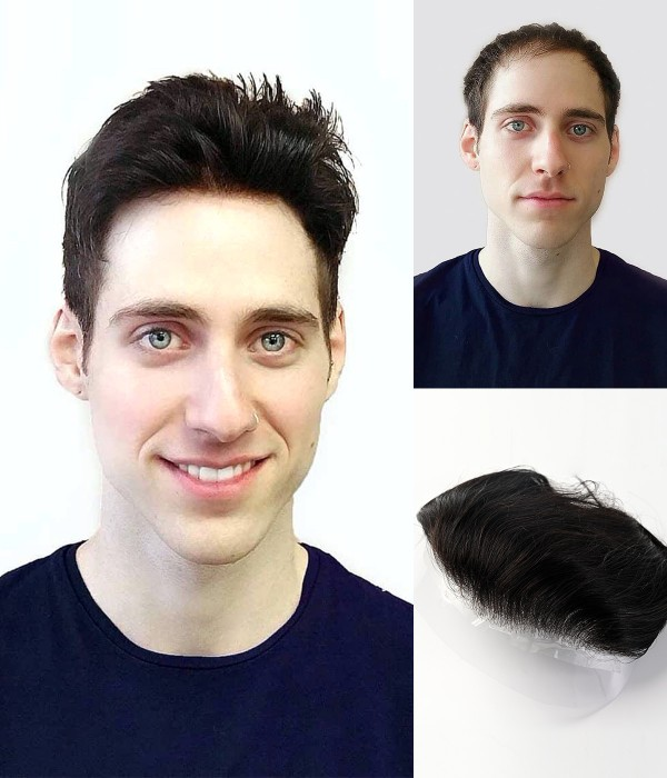 this is a frontal type of toupee that is designed for men who have a receding hairline, the application method to this toupee is really easy and it saves you the trouble of shaving all your hair and all you have to do is to just glue and attach it on the hairline.You are recommended to have a hairstylist blend the frontal hairpiece hair with your existing bio hair. Their professional skills will give you a more natural blending. The toupee is made of a full skin base design with 1.6″*7.2″ size and 6 inches length, the hair density is 105% with 100% Indian remy human hair straight too which offers you the range of free styles as much as you like.